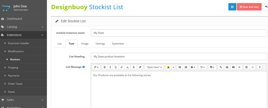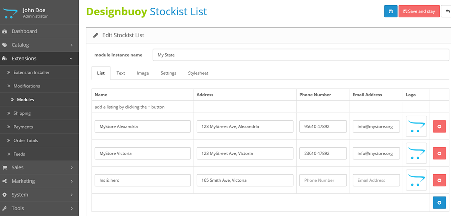 This module is for creating lists on your cart pages. The lists can be of any type, for instance, you may like to display a stockist list, a store address list or even a size and colour chart. There are many options for the display of your information including adding an email link, adding an image, styling, adding a logo - you can make each list as flexible as you like.