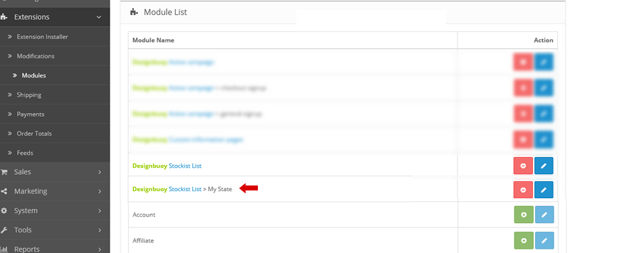 First go to Extensions > Modules and click on the Stockist List module. This will make a new instance of the module.