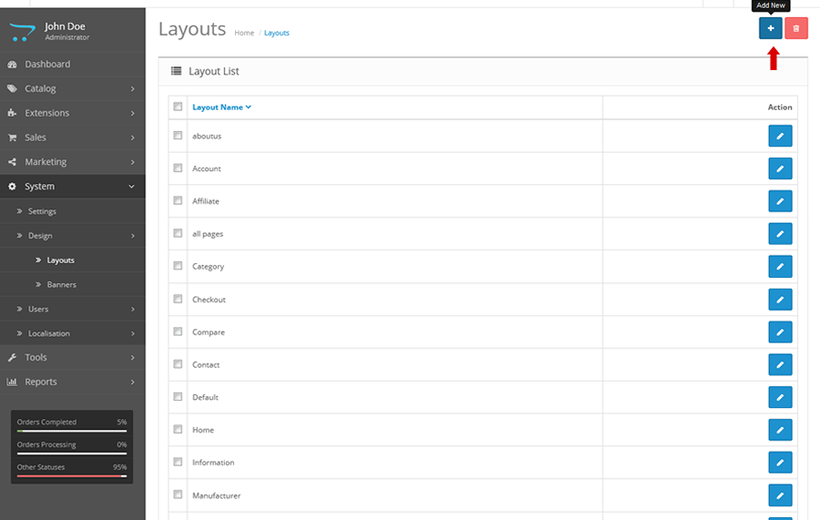 To add a new layout, go to System > Design > Layouts. Create a new layout.